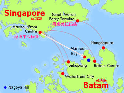 å·´æ·¡å²›(Batam Island)属于å°å°¼ï¼Œä½†ç”±äºŽç´§ä¸´æ–°åŠ å¡ï¼Œæ‰€ä»¥ä¸€èˆ¬éƒ½æ˜¯ä»Žæ–°åŠ å¡åèˆ¹è¿‡åŽ»ã€‚ä»Žæ–°åŠ å¡åŽ»å·´æ·¡å²›æœ‰ä¸¤ä¸ªåœ°æ–¹å¯ä»¥å船,一个是丹那美拉(Tenah Merah Ferry Terminal),一个是港湾(Harbourfront Ferry Terminal)。巴淡岛上有5个ä¸åŒçš„æ¸¯å£ï¼Œå®ƒä»¬åˆ†åˆ«æ˜¯Harbour Bay, Batam Centre, Nongsapura, Sekupang, Waterfront City。 ä¸ºèŠ‚çœæ—¶é—´å’Œè·¯ç¨‹ï¼Œå¤§å®¶å¯ä»¥æ ¹æ®è‡ªå·±çš„æƒ…况æ¥ç¡®å®šè‡ªå·±çš„出å‘和到达港å£ï¼Œï¼ˆæˆ–旅游é…套ä¸çš„规定的出å‘到达港å£ï¼‰ï¼Œææ—©é¢„定渡轮。
