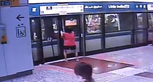 原æ¥è¿™ä½aunty其实是在追她患有自é—ç—‡çš„å¦¹å¦¹ï¼Œå› ä¸ºå¥¹çš„å¦¹å¦¹å…ˆå†²ä¸Šäº†åœ°é“,而那ä½ç©¿çº¢è¡¬è¡«çš„aunty在åŽé¢è¿½å¥¹ã€‚最åŽè¿˜æ˜¯æ²¡èƒ½å上地é“ï¼ŒäºŽæ˜¯æƒ…æ€¥ä¹‹ä¸‹ç»æœ›åœ°ç”¨æ‰‹åŽ»æŽ°é—¨ï¼Œç„¶åŽè¢«å›°åœ¨åœ°é“å’Œå±éšœé—¨ä¹‹é—´ã€‚